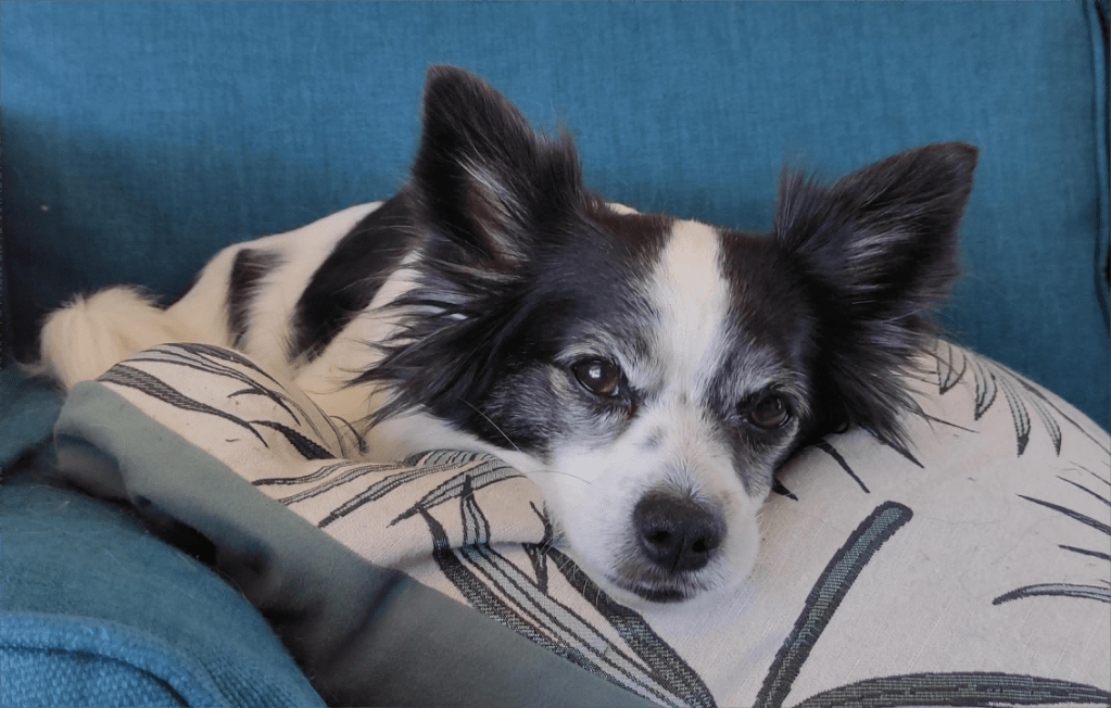 Over the following weeks, we visited often, and my daughter eventually chose a puppy for their farm. They already have Whina, their German Shepherd (a Māori name, pronounced Fina), and Hugo, a Papillon cross. Hugo stands all of nine inches high at the shoulder, spends more time asleep than awake, and if there’s a lap available, he’s on it. But don’t be fooled—when roused, he’s the best guard dog in the district.